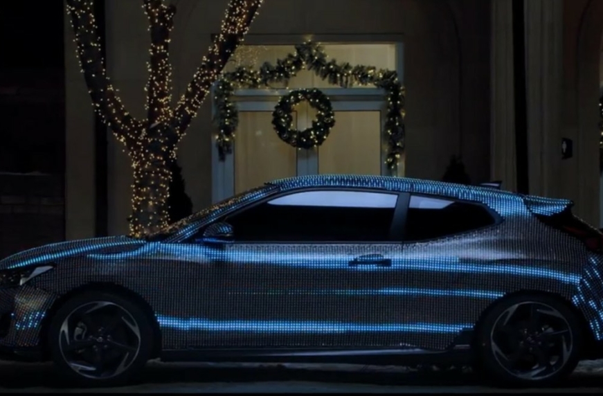 К новогодним праздникам представлено новое видео с Hyundai Veloster 2019. Купе Хюндай нового украсили светодиодами и превратили в подобие гирлянды.