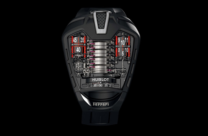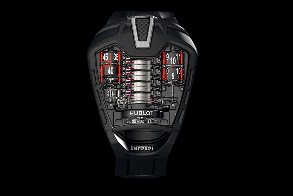 Часы носят название MP-05 LaFerrari. Их дизайн выполнен по образу двигателя итальянского бренда, так что выглядят они весьма оригинально. В производстве часов используются такие материалы, как титан, карбон и алюминий, а циферблат защищен сапфировым стеклом. Своей эксклюзивностью новинка не будет уступать самому итальянскому суперкару, которому она посвящается. Hublot выпустит всего 50 экземпляров таких часов.