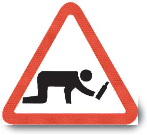 Это не очередная шутка от любителей фотошопа, а вполне реальный дорожный знак. Он извещает водителей о возможном появлении нетрезвых людей на проезжей части. Повесить этот знак на дорогах решили власти румынского города Пекика. Мэр Петру Антала объясняет такое решение следующим образом: «Пекика – приграничный город, через который проезжает огромное число автомобилей. Но у нас также очень хорошо развита «ночная жизнь». Мы должны предупредить водителей, что на дороге неожиданно могут появиться люди, которые плохо контролируют свои действия». Логика в этих словах присутствует, и, возможно, данный знак на самом деле будет способствовать улучшению ситуации на дорогах города. Надо отдать должное тем, кто его рисовал, ведь ползущий на четвереньках человечек с бутылкой в руке передает основную идею как нельзя лучше.