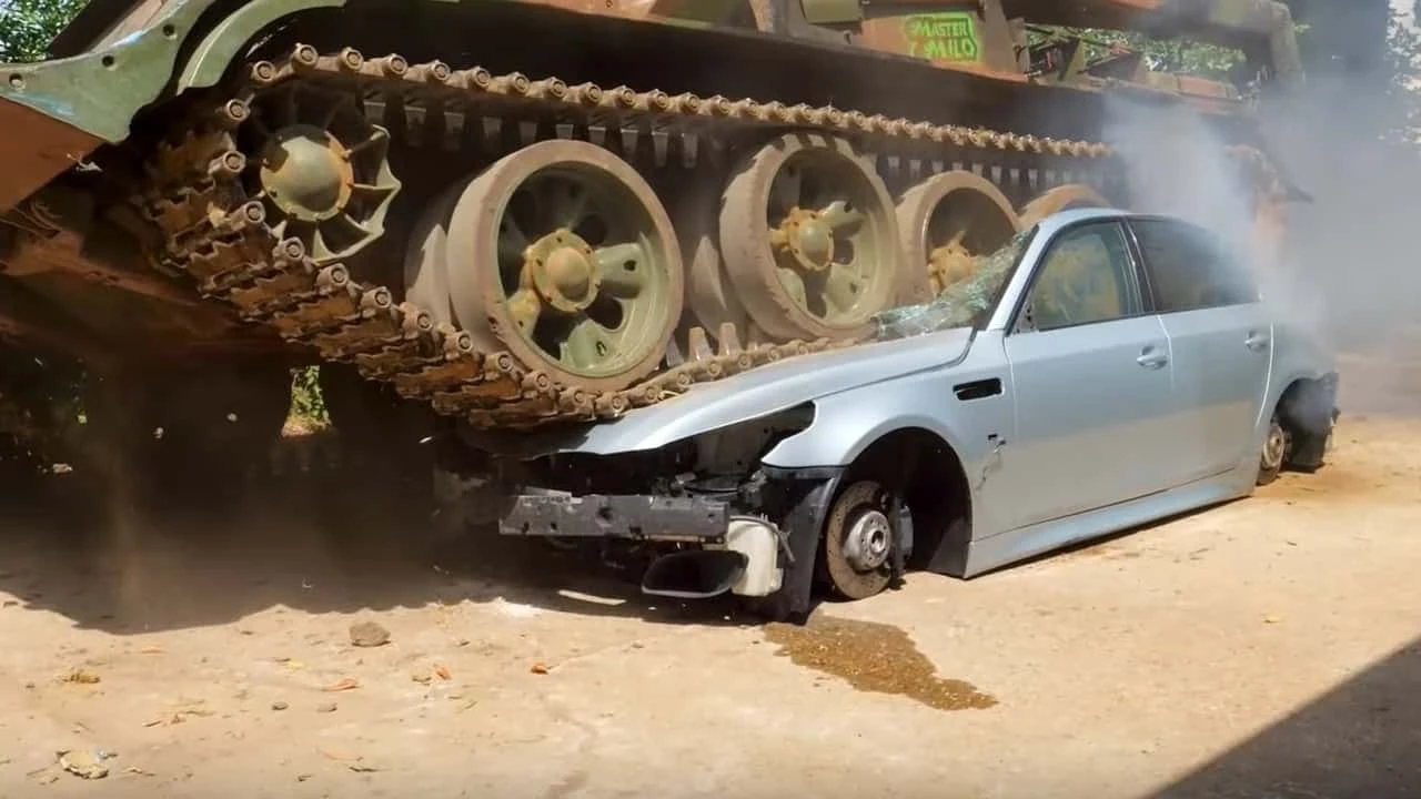 Слід зазначити, що зовні герой цього відео виглядав дуже добре. Але як виявилося, десь у районі двигуна у седана тріснула рама. Перш ніж відправити E60 M5 під «прес» блогери зняли все, що можна було врятувати, від коліс до центрального дисплея. Хоча опинись седан у руках українських майстрів, міг би ще поїздити і не один рік.