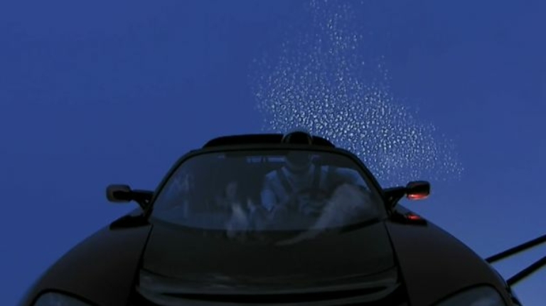 В самом авто находился манникен в костюме космонавта, который во время полета “наслаждался” песней Space Oddity Дэвида Боуи. При этом “успокаивала” его надпись Don’t Panic, нанесенная на приборную панель.