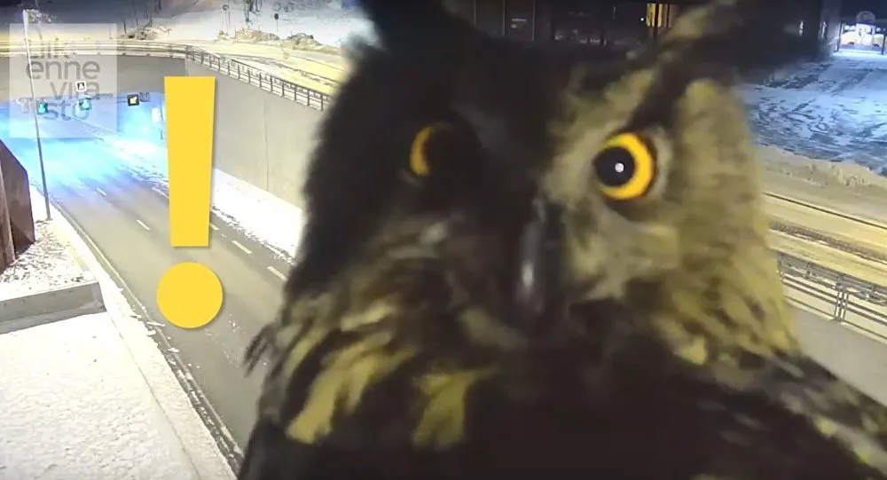 Необычный случай произошел в Финляндии. Сова загородила обзор камере видеонаблюдения и, возможно, тем самым кого-то спасла от штрафа.