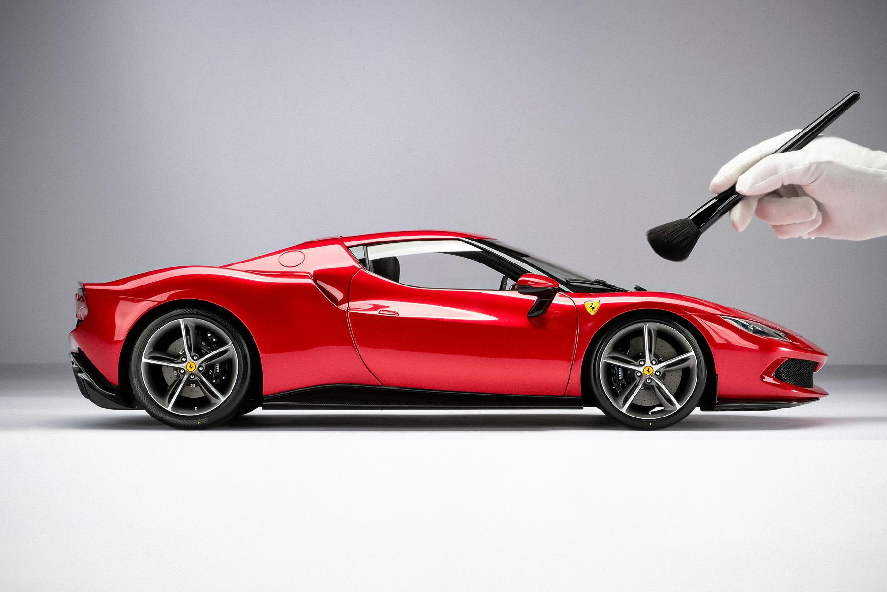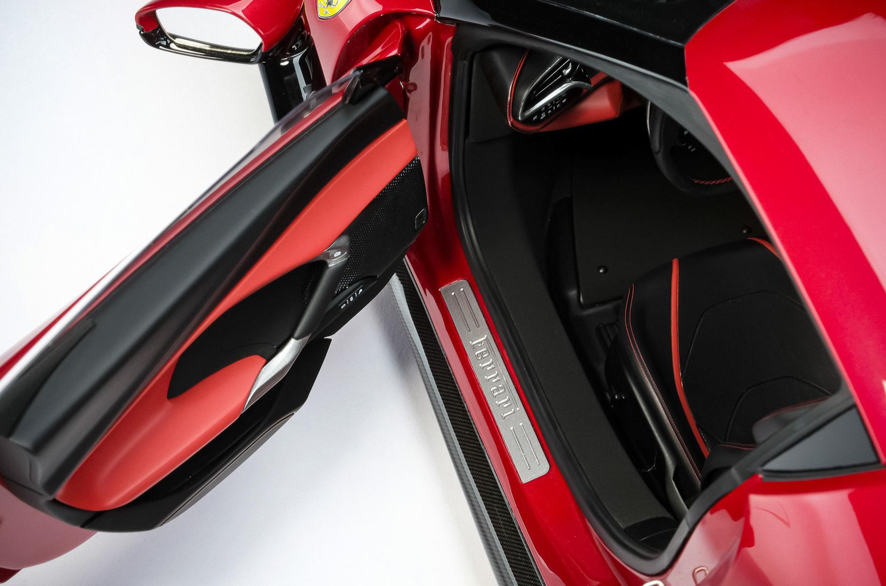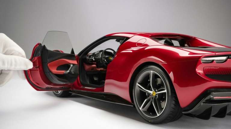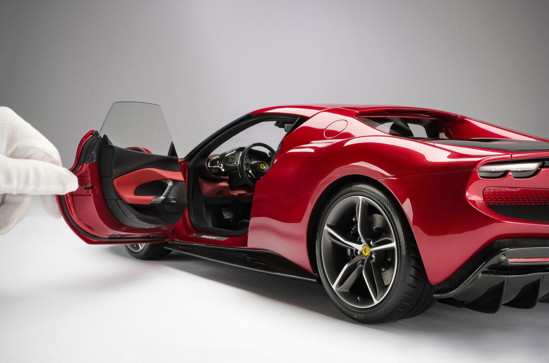 У масштабної моделі такий самий малюнок оптики, карбонові вставки і гальмівні супорти. Дверцята відкривають доступ в салон, пропрацьований до найдрібніших деталей. Мініверсія Ferrari 296 GTB має приголомшливий вигляд, і це не дивно. За заявою компанії, на створення однієї моделі необхідно близько 300 годин. При цьому їх збирають вручну.