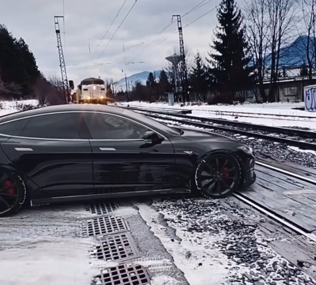 Поїзд переїхав Tesla Model S — вона "обтрусилася" і продовжила рух