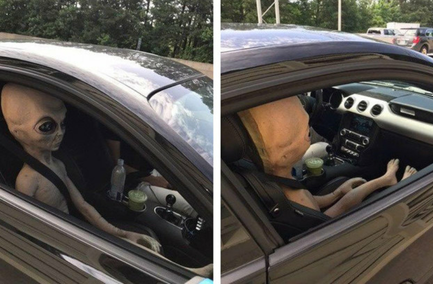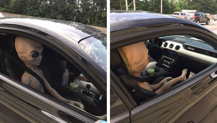Копи зупинили Ford Mustang за перевищення швидкості, але завдяки гуманоїду не оштрафували водія. Поліцейські похвалили порушника, що той пристебнув прибульця і відпустили з усним попередженням за порушення спід-ліміту.