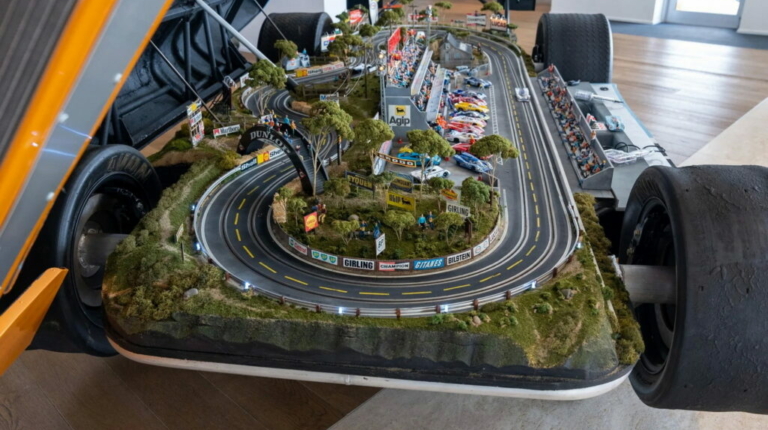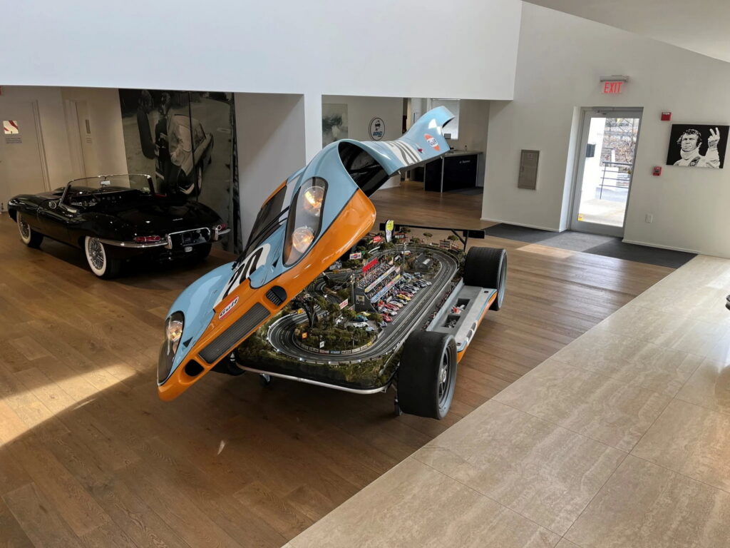 Кілька днів тому аукціон Bring a Trailer продав незвичайний Porsche 917 — карбонову репліку з копією гоночної траси «Сарта» (фр. Circuit de la Sarthe) або «Ле-Ман» у масштабі 1:32 всередині. Кузов автомобіля пофарбований у кольори північноамериканської нафтової компанії Gulf Oil. Піднімається він за допомогою пульта дистанційного керування. Під ним знаходиться дерев’яний макет розмірами 396 см у довжину та 183 см у ширину.