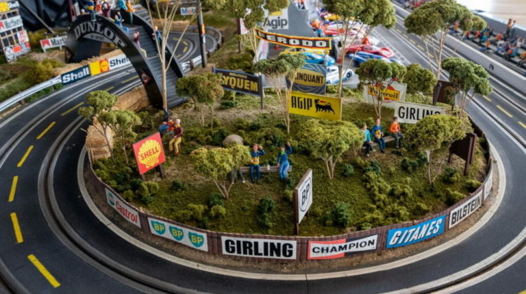 Він включає розфарбовану вручну гоночну «петлю» з двома крутими поворотами, освітлювальними щоглами, деревами і чагарниками. Уздовж траси розставлені фігурки робітників, водіїв та глядачів, а також логотипи учасників та спонсорів: Shell, Agip, Champion, Girling, Bilstein, Solex та інших.