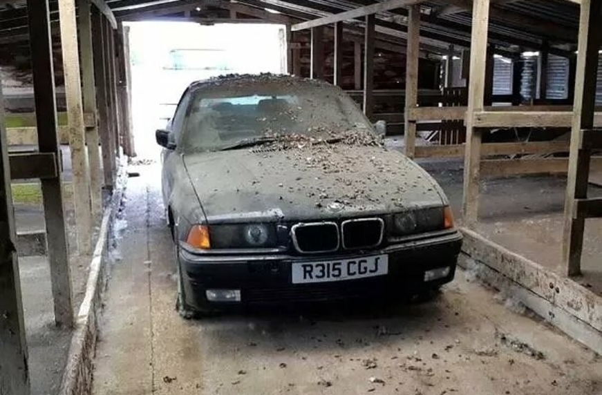 Власник цього BMW 323i в кузові кабріолет залишив свій автомобіль у сараї, де його сусідами на довгі 10 років стали кури. Результат цього сусідства можна побачити на фото.