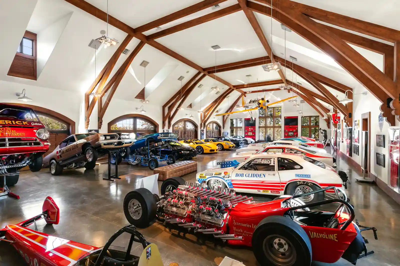 Для повсякденних автомобілів передбачено окремий гараж, що вміщає до семи машин. Схоже, колишній власник по-справжньому любить автомобілі та швидкість. Але є у нього й інші захоплення. Доказом тому служать стайня, іподром, двоповерховий причал для човнів, кілометрова бігова доріжка, тренажерний зал, боулінг, басейн з морською водою і майстерня.