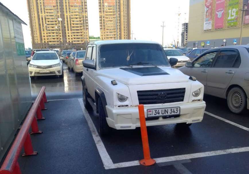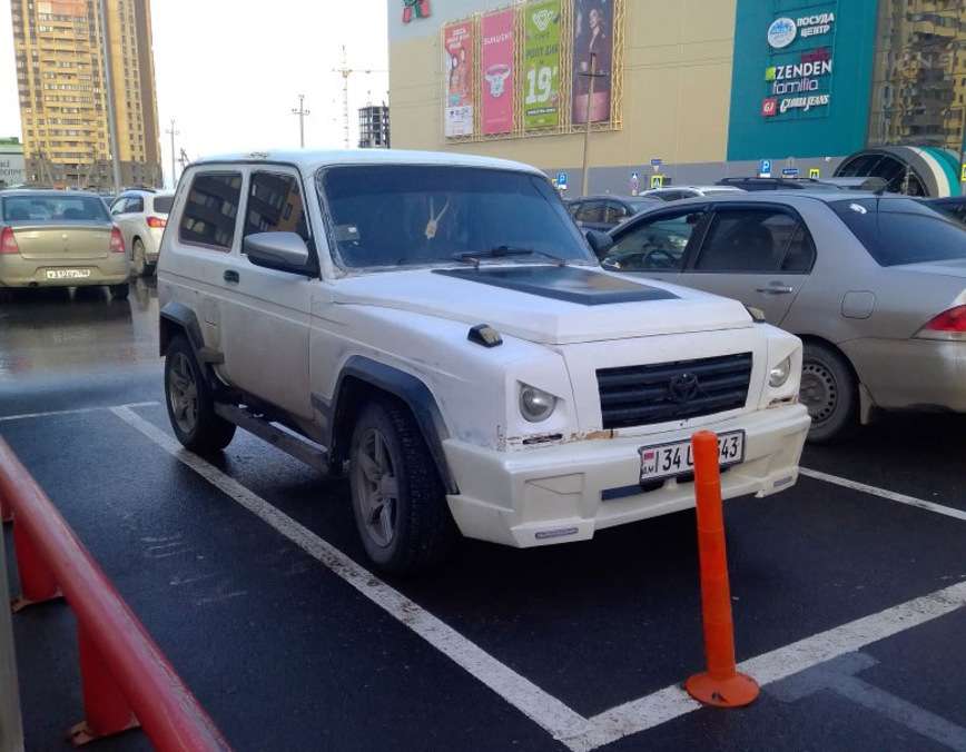 У Тюмені на парковці супермаркету зняли дивну Ниву. Схоже, цей ВАЗ-2121 на номерах Вірменії вирішили перетворити в Mercedes G-Class.