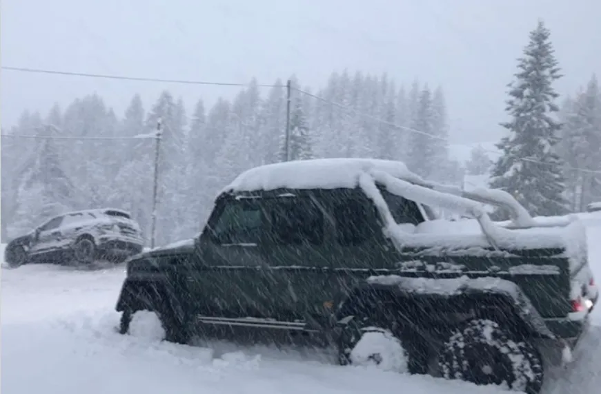 Об этом свидетельствует ролик, снятый в Итальянских Альпах. Большой “Кубик” ездил по сугробам на горном склоне и в один момент крепко застрял, сев на “брюхо”. На помощь G 63 AMG 6×6 приехал специальный гусеничный трактор, ратрак, но ему не удалось вытащить машину.