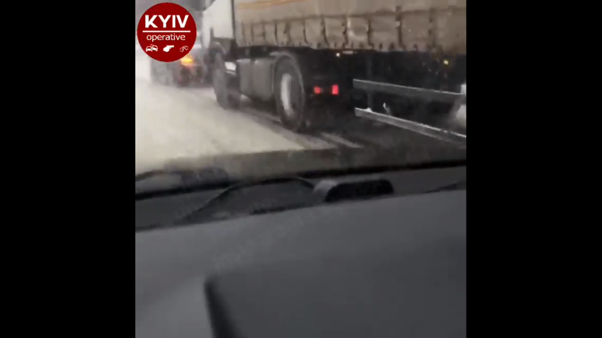 Снегопад в Украине: застрявшую фуру взял на буксир Mercedes S-Class