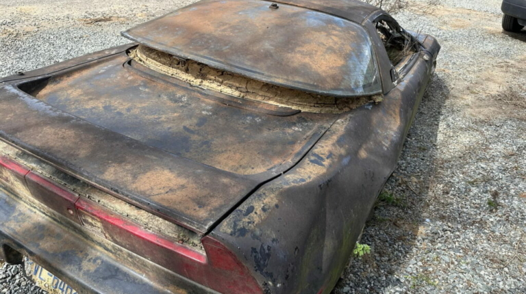 Іржавий спорткар-утопленник не мав двигуна та скла. На кузові «дводверки» видно дірки, передні стійки зламані, а багажник заповнений брудом. У повністю зруйнованому салоні виріс цілий сад. Але при цьому на одометрі всього 62764 км.
