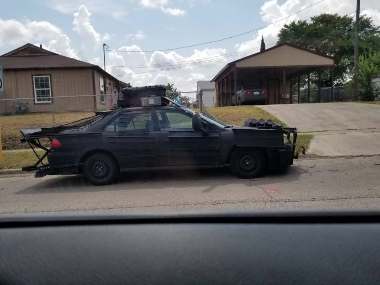 Автомобиль получил многочисленные защитные элементы из металла, дуги спереди и сетки на стеклах. Тюнинг Honda Accord также включает задний спойлер, багажник на крыше и огромные зеркала заднего вида от пикапа.