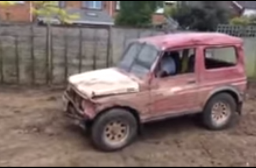 Чтобы убрать строение, они использовали ненужный внедорожник Suzuki Samurai, доживающий последние дни.