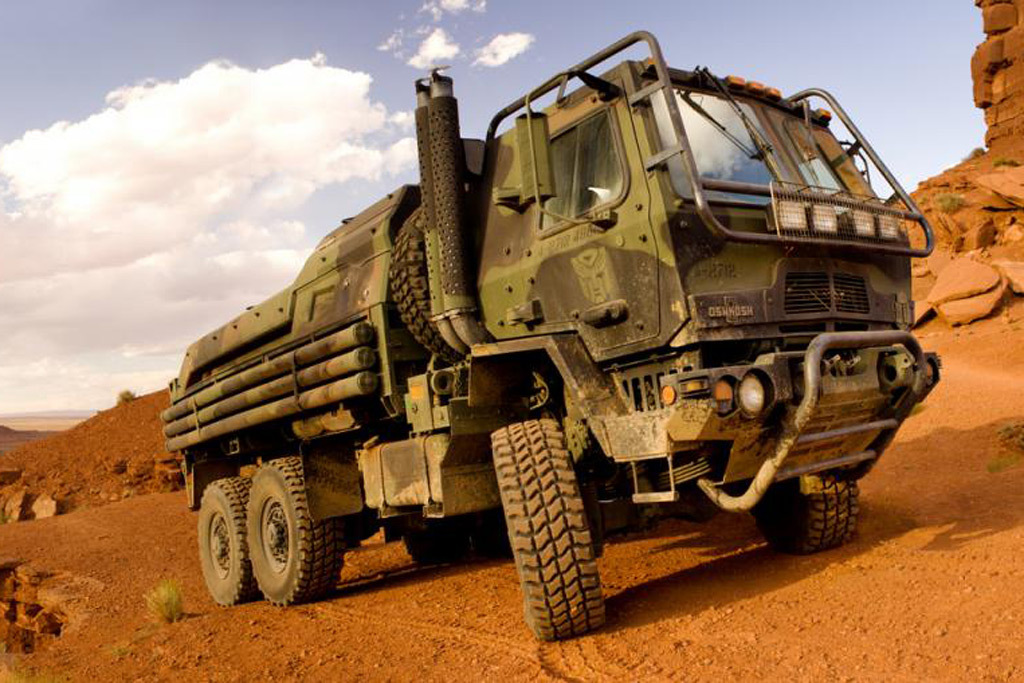На фото изображен армейский грузовик, производства американской компании Oshkosh Defense. Ему предстоит воплотить персонажа по имени Hound или же Пес, который, судя по логотипу на двери, будет выступать на стороне «хороших парней».