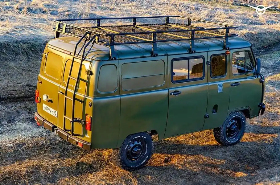 Почнемо з того, чим же в принципі УАЗ-452 Трофі відрізняється від звичайної версії. Як пишуть російські ЗМІ, це сама позашляхова Буханка: її оснастили сталевими колесами чорного кольору з покришками BFGoodrich All-Terrain, експедиційним багажником на даху, східцями на задніх дверцятах і ручками нового типу. Усередині ж з'явився підігрів сидінь і зсувні кватирки.