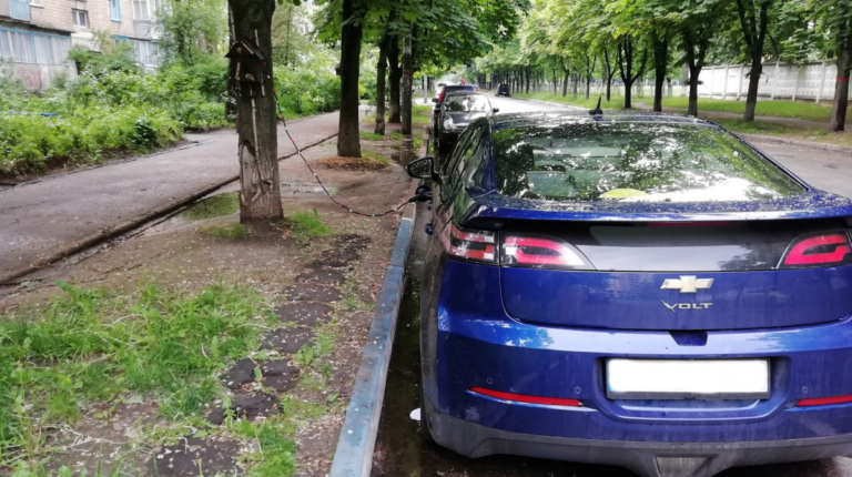 Кстати, на представленных снимках заряжается не стопроцентный электрокар, а гибрид Chevrolet Volt. Причем он оснащён еще и ГБО – обратите внимание на “гнездо” в заднем бампере. В последнее время такие авто модно в наших краях переводить на газ.