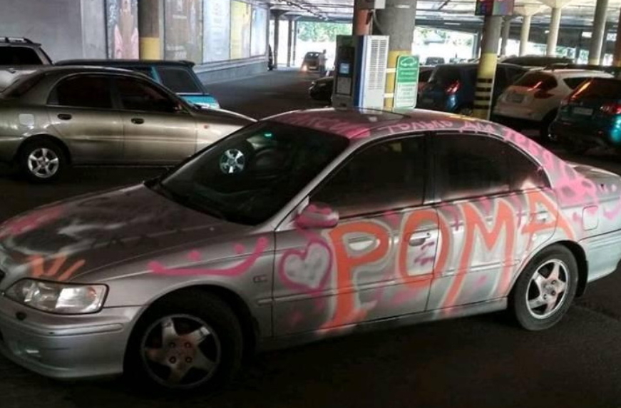 В последнее время в Украине участились случаи, когда обиженные на своих мужчин женщины за измену портят автомобили своих половинок. В данном же случае все наоборот- девушка разрисовала автомобиль парня за безумную любовь к нему.