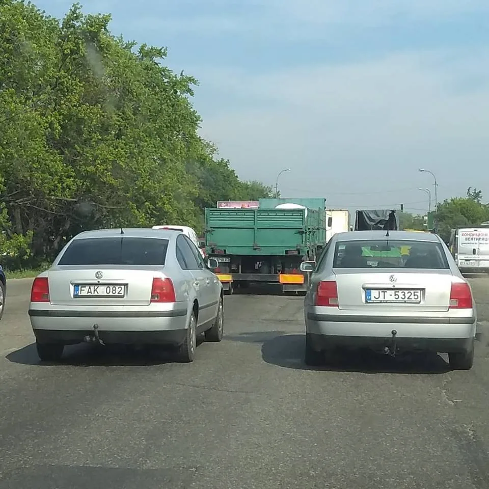 Так, на своей странице в Facebok журналист Евгений Муджири, опубликовал снимок на котором в одном транспортном потоке запечатлены два одинаковых авто с европейской регистрацией - машины одной модели, да еще и в одинаковом цвете. Причем у обеих есть фаркоп для прицепа.