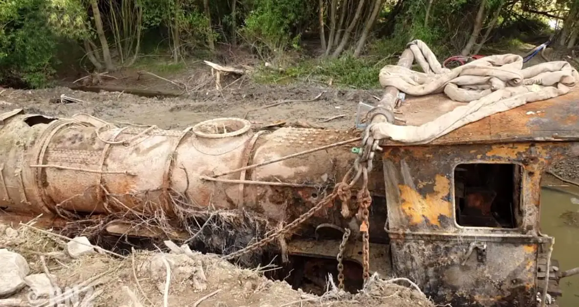Витягування паровоза з-під шару мулу виявилося непростою справою. За словами місцевих ентузіастів, довелося залучити важку техніку, щоб відкачати воду і дістати «дідка» з мулистого дна річки. Процес ускладнило коріння дерев, яким за ці роки встиг "обрости" локомотив. Їх довелося рубати лопатами і сокирами, а сам паровоз відмивати, поливаючи водою зі шлангів. Надалі вони планують відновити паровоз, хоча, судячи з фото, це здається неможливим.
