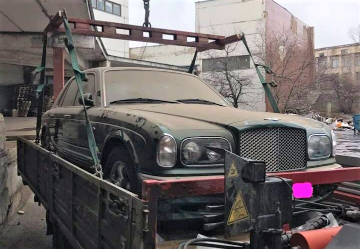 Так произошло и с этим насчастным Bentley Arnage, найденным в Киеве в ходе рейда по эвакуации запаркованных с нарушениями транспортных средств. Говорят, что этот Бентли находился без внимания своего владельца больше года. Об этом, кроме всего прочего, свидетельсвует толстый слой пыли.