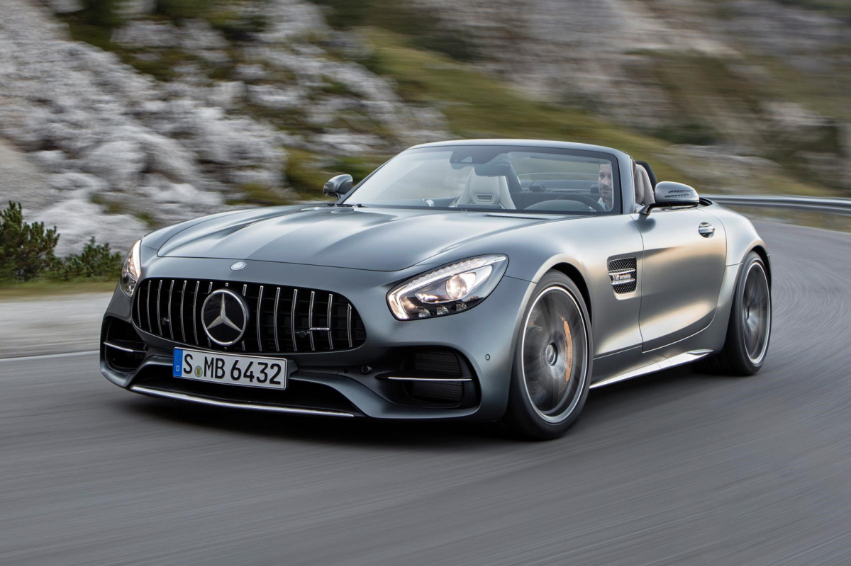 К слову, Mercedes-Benz AMG GT C Roadster – одна из самых новейших и быстрых моделей марки на сегодняшний день. Автомобиль оснащен 557-сильным ,би-турбо V8 и способен ускоряться до “сотни” за 3,7 с. Трансмиссия – МКПП или АКПП, привод – задний.