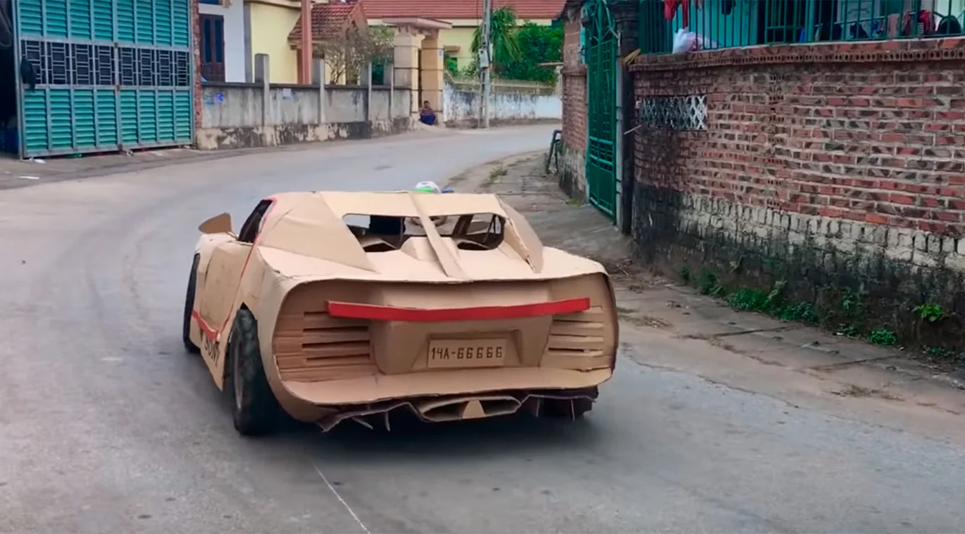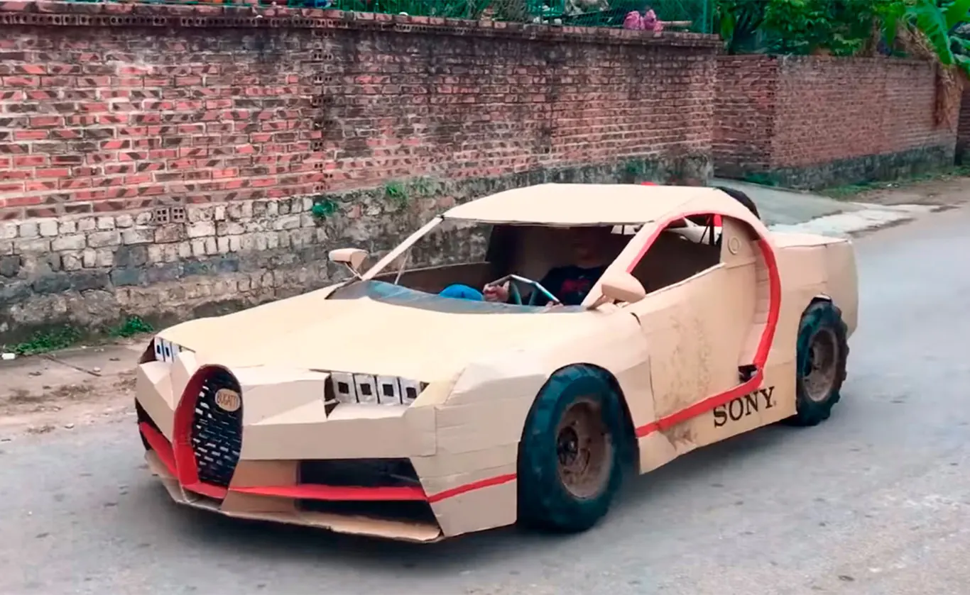Цікаво ще й те, що всі створені ними копії функціональні. Вони можуть переміщатися і на вигляд такі самі, як і справжні авто. В основі бюджетного Bugatti Chiron лежить каркас, зварений з металевих труб. Поверх нього "надітий" картонний кузов. Автомобіль приводить в рух педальний велосипедний привід. Крім того, їхній версії Chiron дісталися колеса більшого розміру. Попередні моделі умільці комплектували велосипедними.