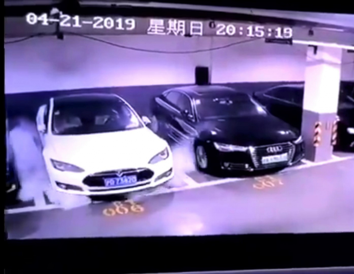 На свежем видео из Шанхая, о котором, кажется, написали и рассказали абсолютно все СМИ нашей планеты, мы видим белую Tesla Model S на подземной парковке. Сперва обратите внимание на дым, появляющийся из-под электромобиля. Довольно быстро после этого происходит взрыв. Ролик произвел невероятный резонанс в Сети.
