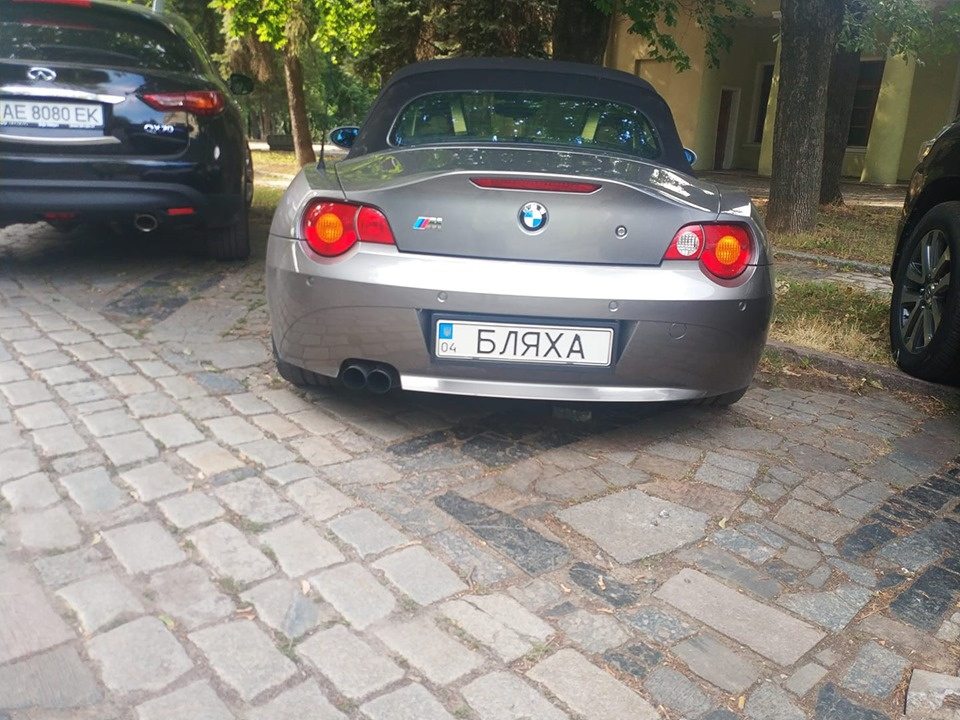 У результаті, його Z4 M зараз катається на номерах… “БЛЯХА”. Висока ймовірність, що таким чином господар БМВ вирішив пожартувати над власниками нерозмитнених автомобілів (ну, навряд чи це емоційне, лайливе висловлювання – в такому разі в кінці напевно стояв би знак оклику). Хоча не виключено, що в минулому машина була на єврономерах і власник пішов на такий крок через ностальгію.