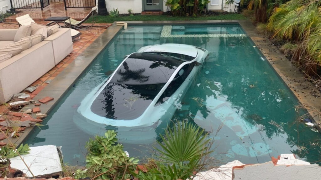 Справа в тому, що у вівторок на Південну Каліфорнію обрушилися зливи, що призвело до повеней та евакуації у цьому районі. Екстреним службам довелося реагувати на численні виклики. Але точно сказати, чи пов’язаний «заплив» у басейні зі штормом, рятувальники не можуть. Імовірно, водій Тесли лише намагався припаркуватися на стоянці поряд з особняком Суонсон.