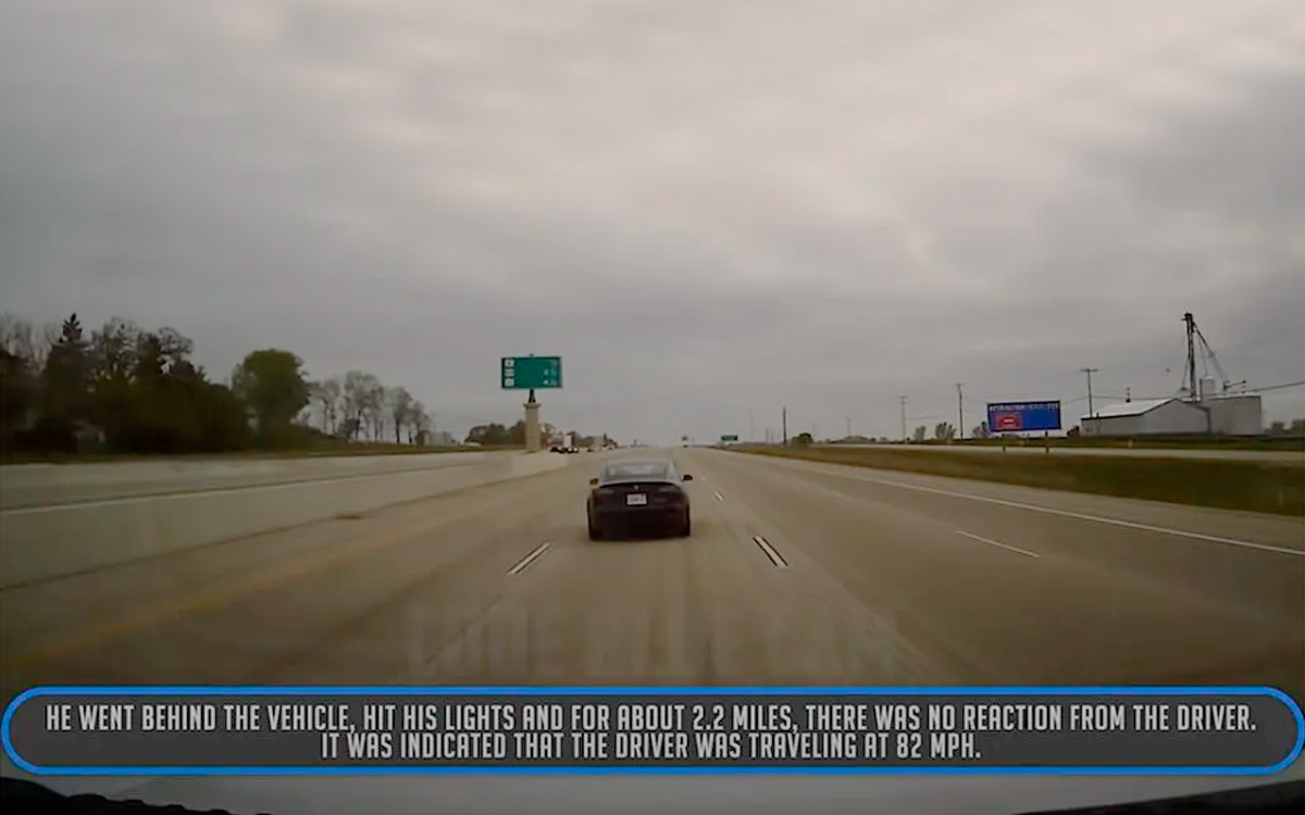 Для того, чтобы заставить владельца Tesla Model 3 остановиться, полицейским пришлось проделать ряд манипуляций. Патрулируя шоссе, они заметили автомобиль со спящим водителем, двигающийся со скоростью больше 130 км/ч. Решив остановить его, они пристроились сзади, включили сирену и маячки и продолжили преследование. Но это не помогло. Автомобиль продолжал движение по заданному маршруту, периодически меняя полосу.