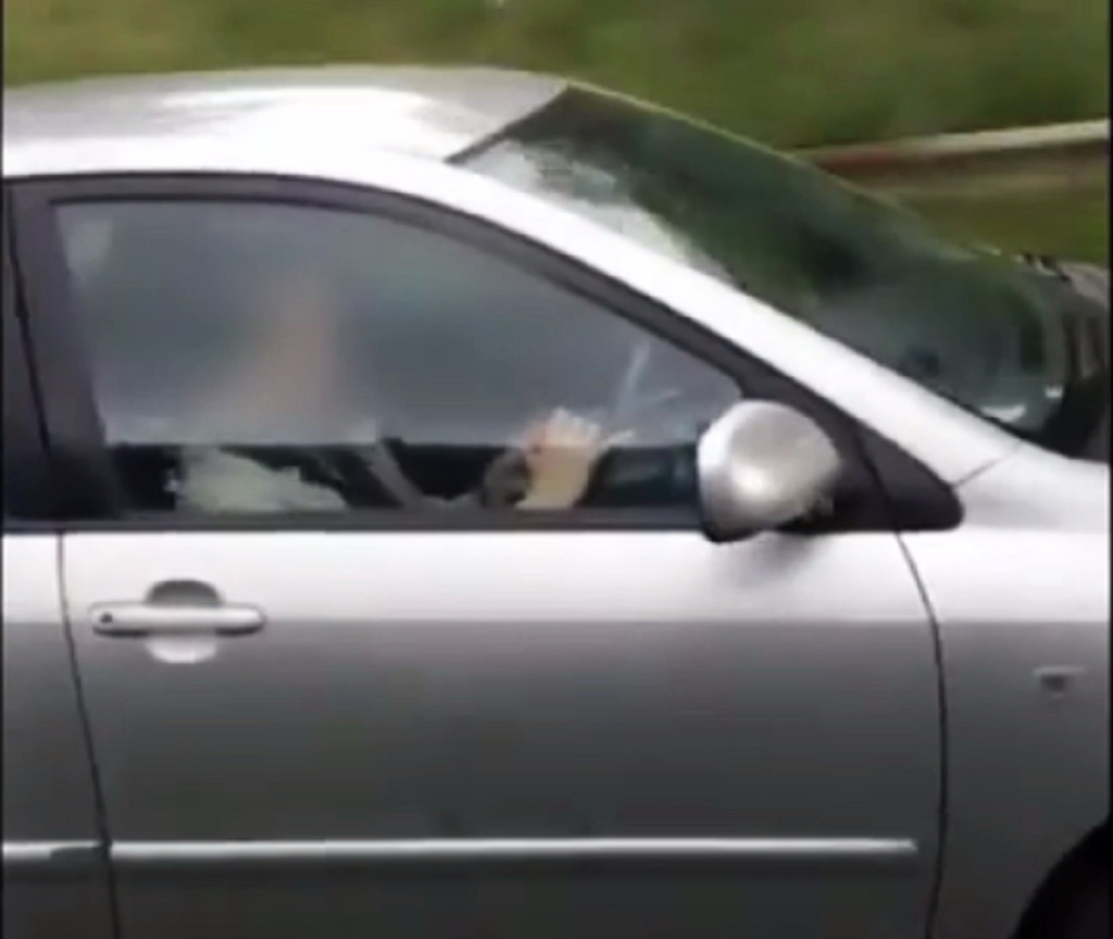 Враховуючи, що швидкість машини була як мінімум дозволені 70 миль на годину (112 км/год), дорогу заливав дощ, а трафік видався напруженим, то усе це більше було схоже на трюк каскадера. Тільки з одним нюансом – на дорозі загального користування і без страховки.