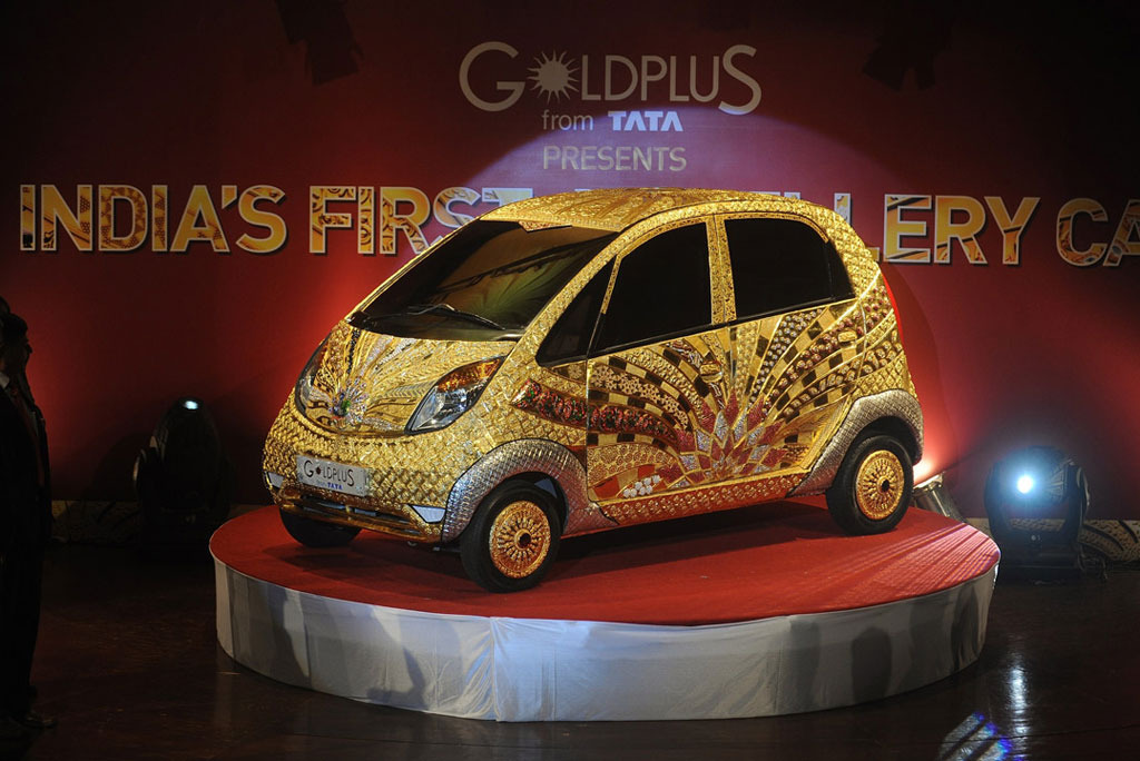 Индия, безусловно, страна удивительных контрастов. Только здесь самый дешевый автомобиль в мире может превратиться в самый дорогой. На днях в городе Мумбаи проходит ювелирная выставка, посвященная 5000-летию ювелирного дела в Индии. Именно на ней был представлен уникальный автомобиль Tata Nano Gold Plus, изготовленный из… золота.