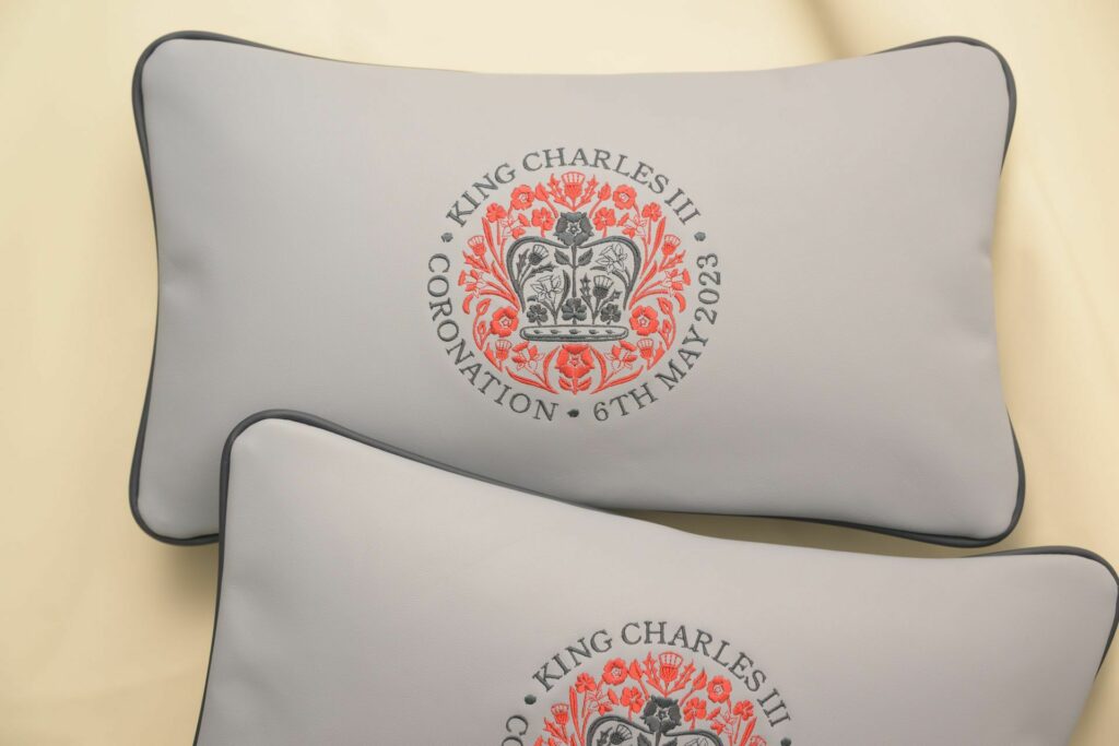 Весь процес виготовлення подушок виконується вручну. Спочатку майстри обробляють шкіру, доставлену із Північної Європи. Потім формують, вирізають та зшивають саму подушки. Наступний етап — вишивка емблеми, присвяченої коронації короля Карла III з датою церемонії —6 травня 2023 року. Для вишивки використовувалися дві окремі нитки. Як кажуть у компанії, процес вишивання зайняв три дні. Для ідеальної якості знадобилося чотири ітерації обробки вишивки.