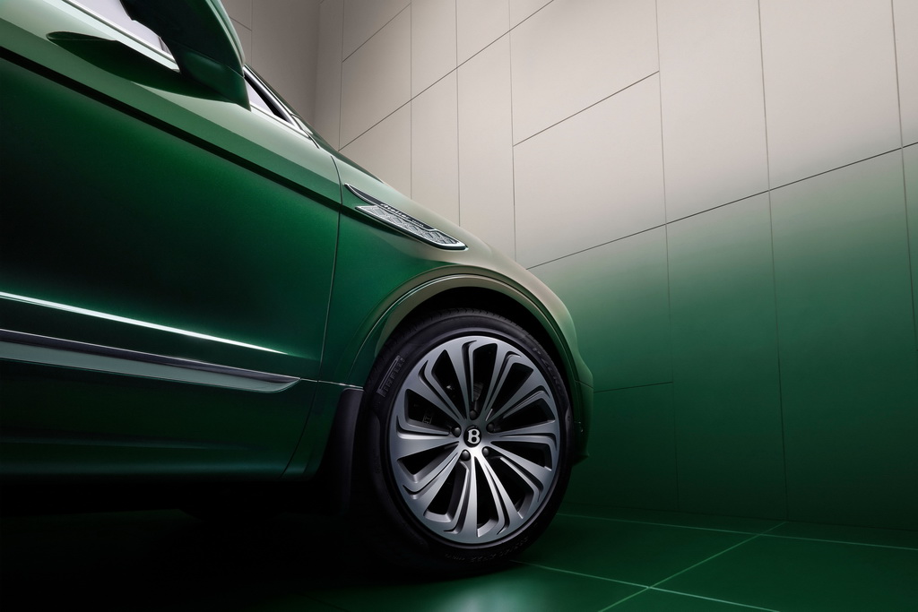 Зовні Bentayga Atelier Edition відрізняється подвійним облицюванням радіатора, яка складається із зовнішньої вертикальної хромованої решіточки та внутрішньої матричної решіточки у відділі Hallmark Satin. Цей же відділ використовується на передніх і задніх бамперах, а 22-дюймові десятиспицеві легкосплавні диски мають відділ у два тони. Вентиляційні отвори на крилах отримали оздоблення Tungsten Satin.