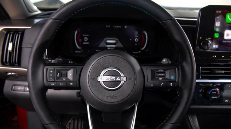 В салоне Nissan Pathfinder – цифровая 12,3-дюймовая приборная панель и большой планшет мультимедиа. Его диагональ – 8 или 9 дюймов в зависимости от комплектации. Диагональ проекционного дисплея – 10,8 дюймов. На последнем дублируется информация с приборной панели, такая как скорость и тд.