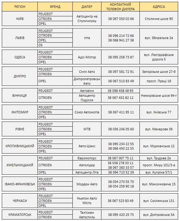 Бренди PEUGEOT, CITROEN та OPEL надають безкоштовне сервісне обслуговування автомобілів державних та комунальних установ
