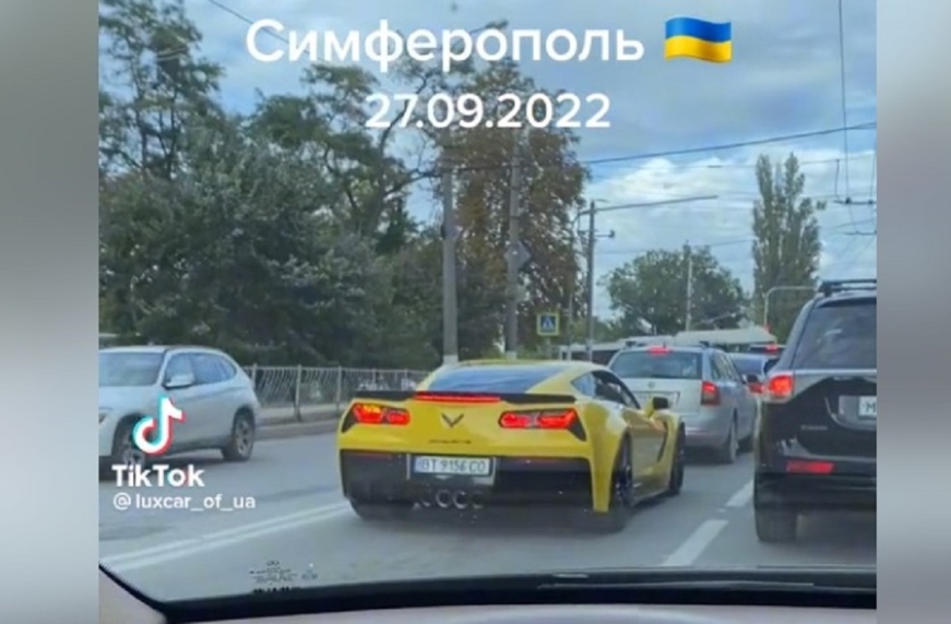 У Криму помічено Chevrolet Corvette з херсонською реєстрацією. Досить рідкісний для України американський спорткар зняли на одній із вулиць Сімферополя. Власник автомобіля міг опинитися в Криму транзитом дорогою до Європи або вибрав півострів як притулок на час війни.
