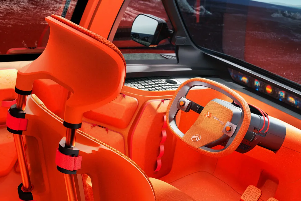 Практичні, технологічні та міцні матеріали, що використовуються в конструкції та обробці концепту, були створені за участю фахівців компаній Goodyear та Decathlon.