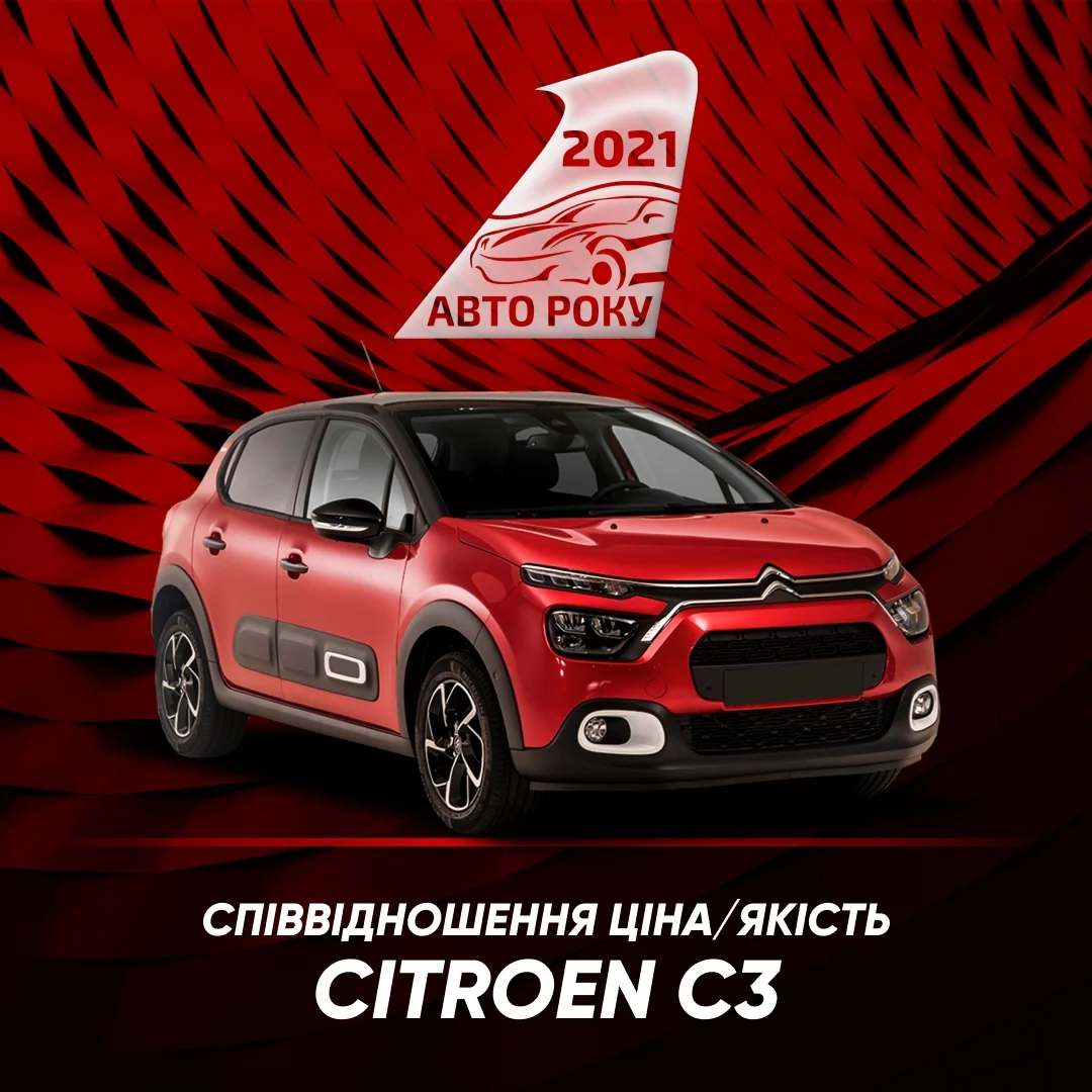 За результатами голосування в національній премії «Автомобіль Року 2021 Україна» CITROЁN С3 став абсолютним переможцем у номінації «Краще співвідношення ціна/якість». І це не дивно, адже хетчбек заслужено вважається одним з лідерів сегменту і одним з бестселерів Бренду в нашій країні. Вибираючи CITROЁN С3, ви отримуєте не тільки стильний, якісний і надійний автомобіль, але стаєте частиною сім'ї Бренду CITROЁN, який славиться своїми цінностями та пріоритетами: відмінний комфорт, турбота про дрібниці, відчуття затишку. Все це є основою фірмової програми Citroën Advanced Comfort®, згідно з якою створюються все нові моделі Бренду.