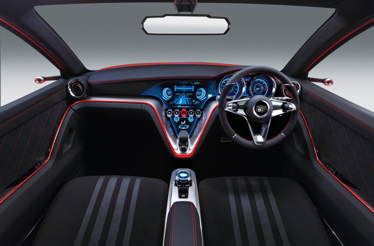 В интерьере обращает на себя внимание необычная V-образная центральная панель, большую часть которой занимает тачскрин. Виртуальные приборы помещены в отдельные колодцы.