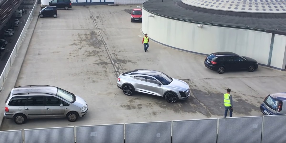Электрический купе-кроссовер Audi e-Tron Sportback был замечен во время тестов в Германии. Автомобиль испытывали на крыше многоуровневой парковки, причем, скорее всего, он передвигался на автопилоте.