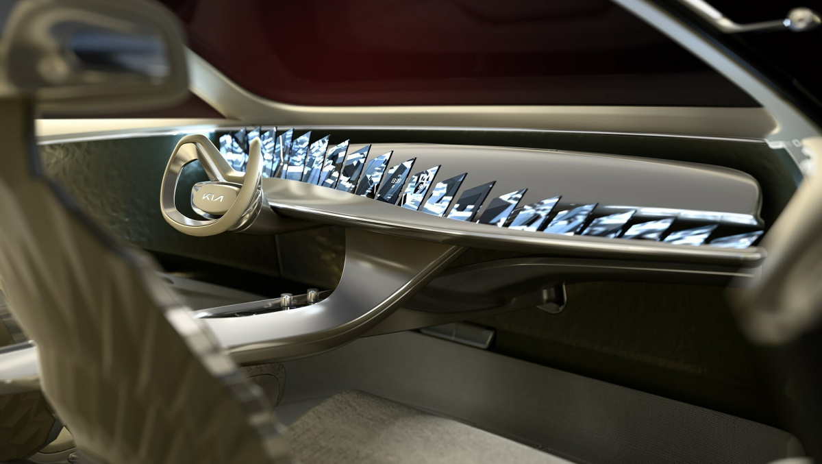 Главные эффекты скрыты в салоне, и это не порядком приевшийся на концептах руль-штурвал или сложносочиненные кресла, а пестрый частокол на передней панели, состоящий из 21 дисплея! Такая шеренга экранов, очевидно, создана не для удобства, а скорее для легкого троллинга набирающей обороты гонки производителей за все большее количество сенсорных панелей в своих моделях, все чаще идущей во вред эргономике.