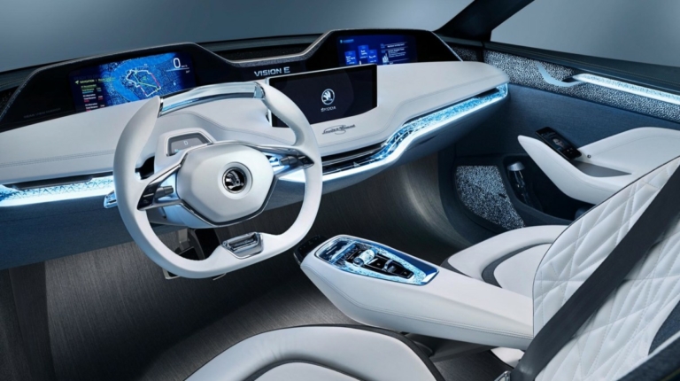 Два электромотора (по одному на ось) суммарно развивают 306 л. с. и разгоняют электрокар Skoda Vision E до 180 км/ч. Запас хода электромобиля составляет 500 км.