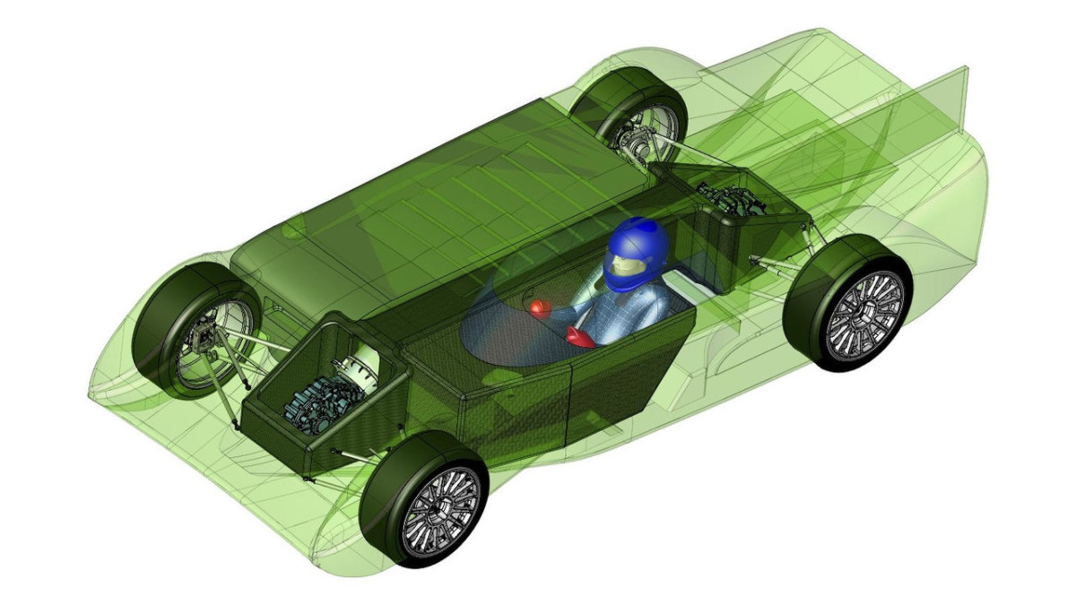 Гоночний електромобіль Panoz буде важити 1250 кг. Оригінальний дизайн авто продиктований його компонуванням з величезною акумуляторною батареєю між осями.