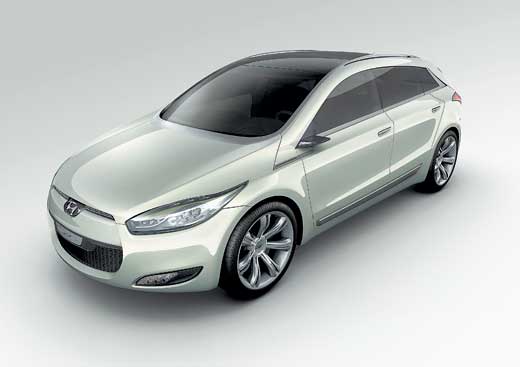 Европейскому отделению дизайнерского бюро Hyundai в Рюссельхайме за счет обтекаемых форм кузова удалось скрыть немалые габариты универсала и придать кузову динамичность. Большая колесная база (2850 мм при длине 4750 мм) позволила увеличить пространство внутри салона, а огромные покрышки с 20-дюймовыми дисками делают облик автомобиля еще более агрессивным.