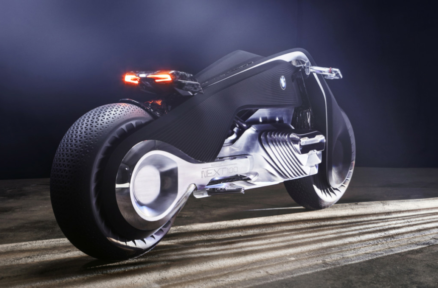 На прикладі нового прототипу Vision Next 100 баварці показують, якими можуть стати мотоцикли BMW в майбутньому. Концепт має технологію Flexframe, яка передбачає зміну зусиль на кермо зі збільшенням швидкості. В цьому випадку під час маніпуляцій із кермом повертається не тільки вилка, а й уся конструкція.