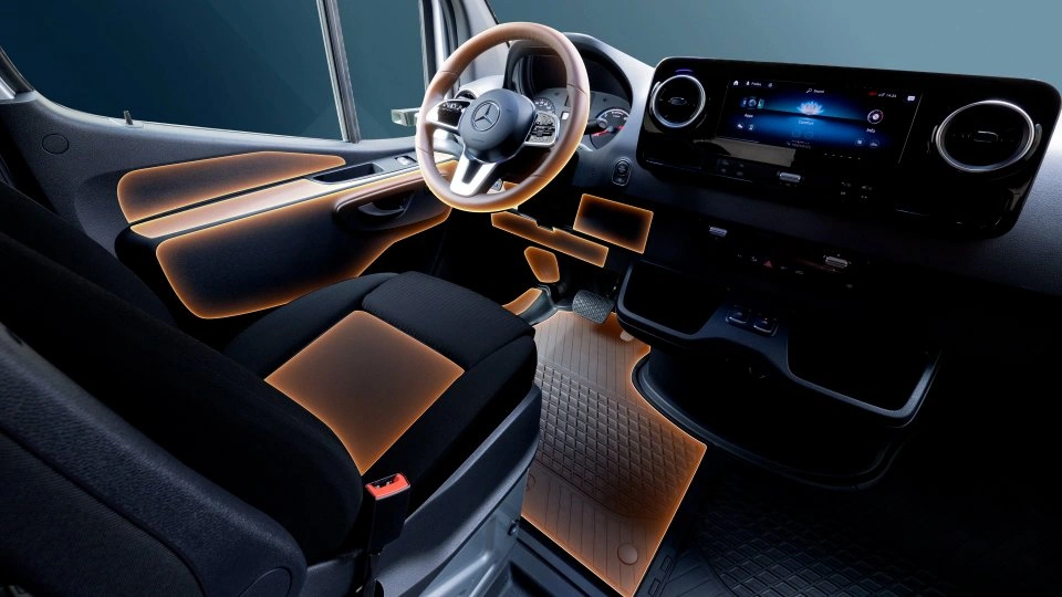 Що ж стосується найсвіжіших рішень, то, насамперед, це нагрівальні елементи ближнього радіусу дії. На відміну від традиційної системи обігріву вони дозволяє точково подавати тепло безпосередньо на водія, що економить електроенергію та не так швидко вихолоджує салон при частій посадці-висадці. Елементи являють собою срібно-вуглецеве покриття, надруковане на нетканих матеріалах. Це можуть бути рульове колесо та кожух рульової колонки, ремені безпеки, оббивка крісла і внутрішні панелі дверей.