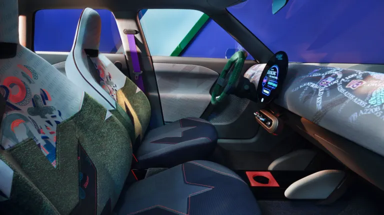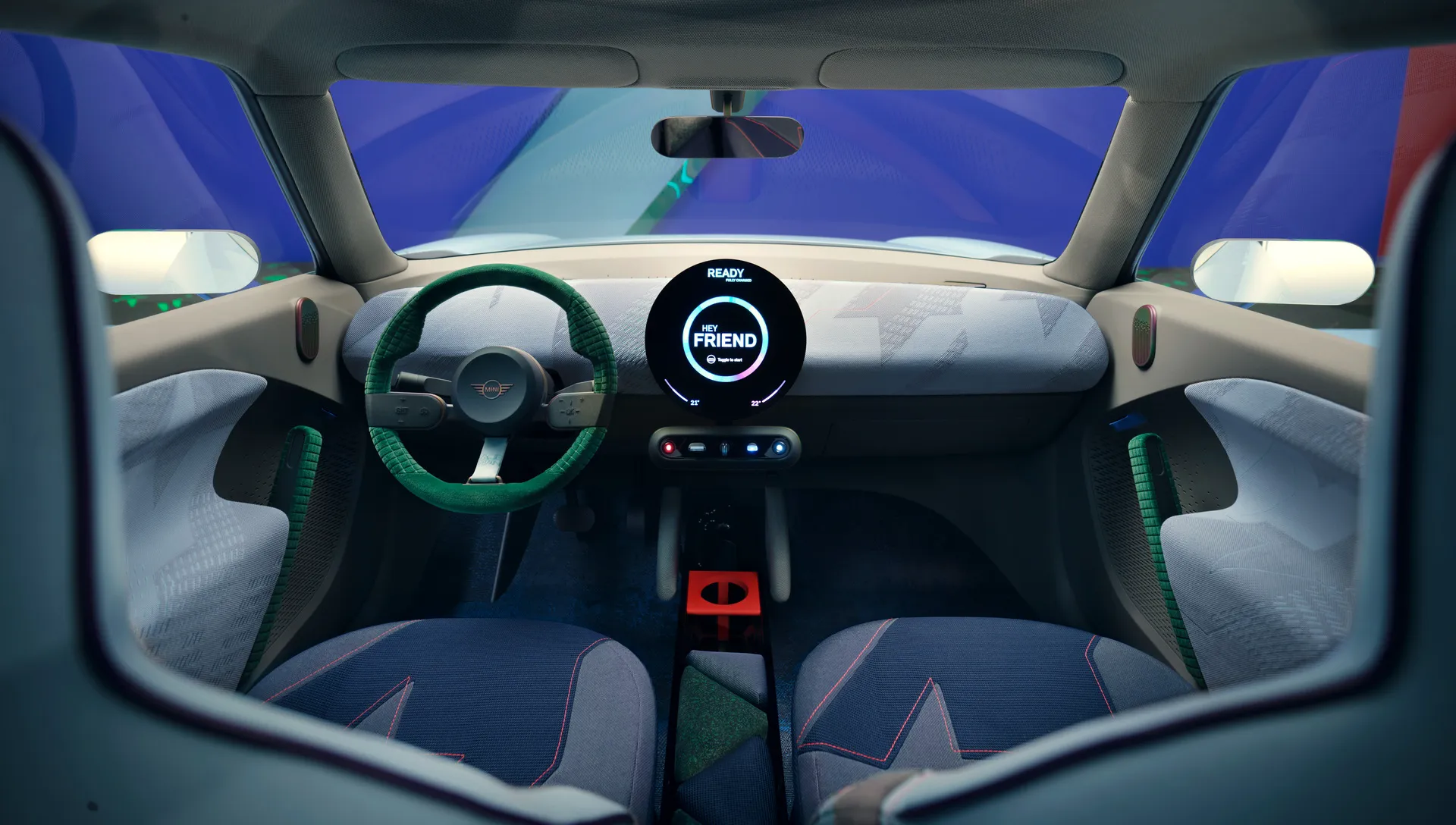 Екстер’єр концепту має не менш оригінальний вигляд. В оснащення кабіни входить круглий OLED-екран. Він ґрунтується на операційній системі MINI останнього покоління, побудованій на програмному стеку Android Open Source Project. Він служить і панеллю приладів, і мультимедійною системою. В оздобленні використані екологічно чисті тканини, виконані з матеріалів вторинної переробки.